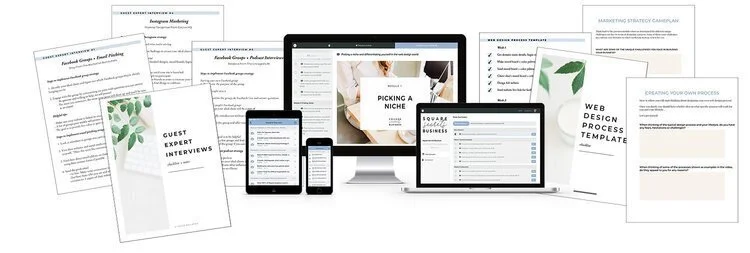 It’s a customizable, successful Squarespace web design business in a box! We cover setting up your packages, prices, and processes (with a heavy focus on getting clients!) I have some of the biggest names in Squarespace website design in the course as guest experts teaching alllll about how they land clients consistently in their business.
