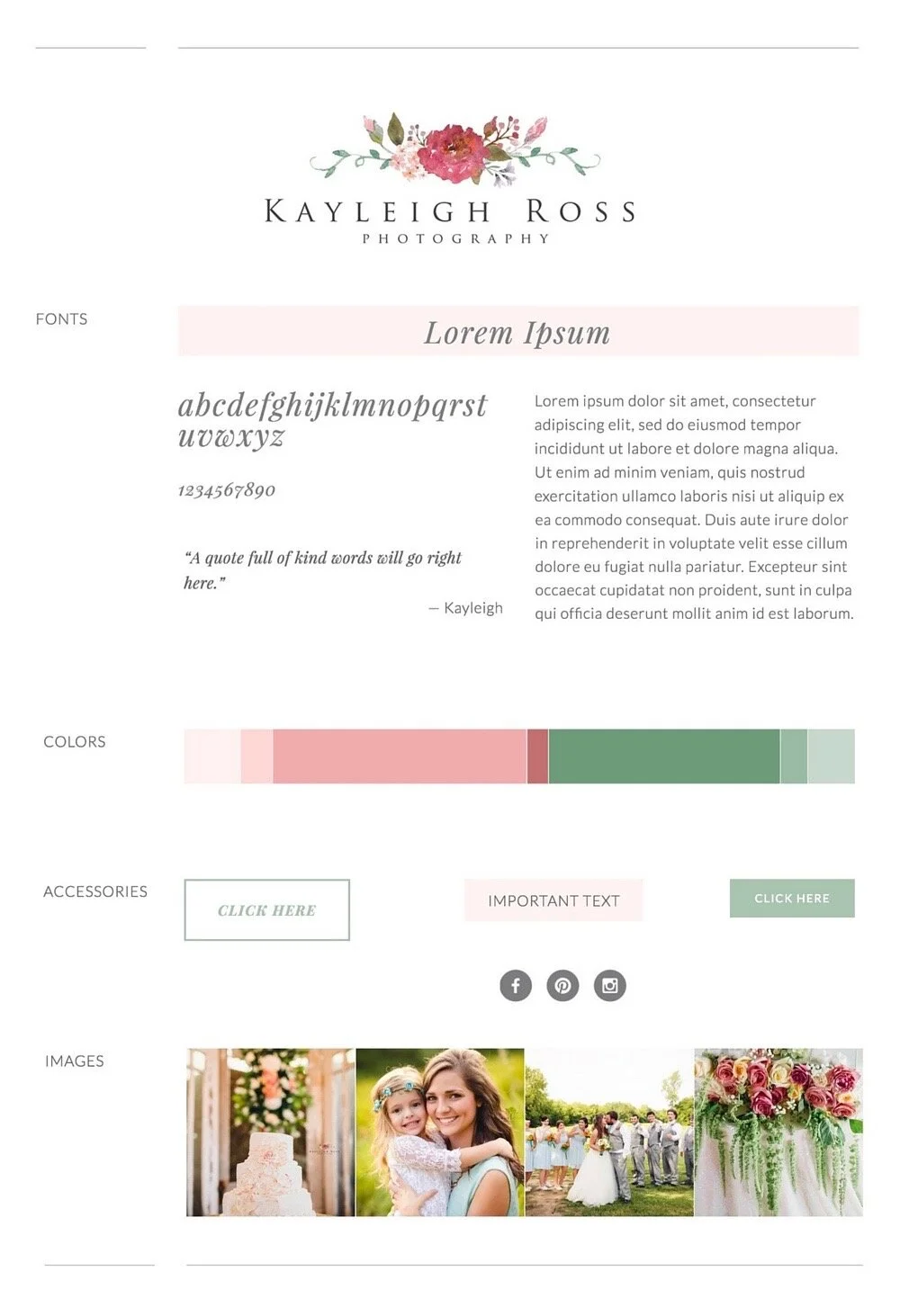 We were lucky that Kayleigh has plenty of fabulous photos, so we used her own photography in the mood board + color palette.