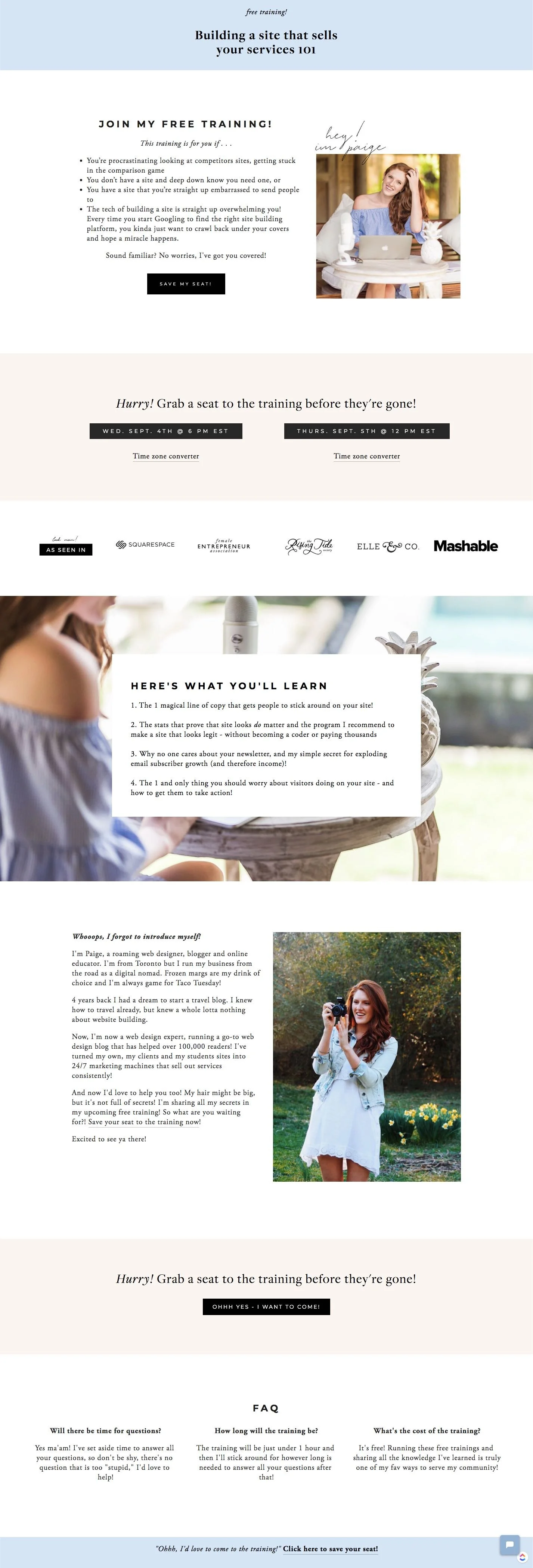 This is your chance to let your brand (and hopefully your sick Squarespace design skills) shine, and to give potential participants further confirmation that they def are going to want to hear what you have to say!