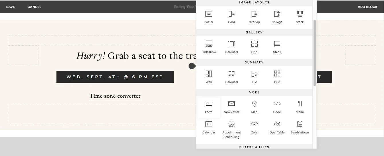 3. Prepare your form block in Squarespace