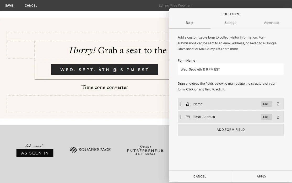How to register webinar participants through a squarespace page