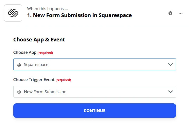Use the drop down to select the name of the form you just finished creating in Squarespace.
