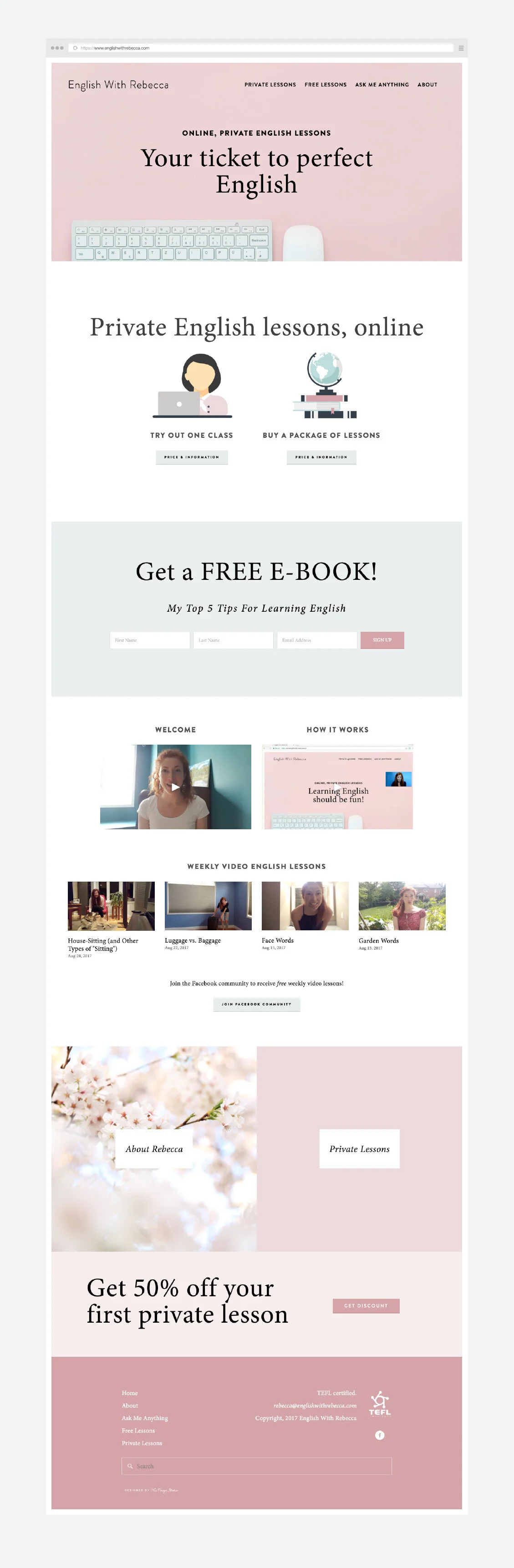 Rebecca wants for her students to have fun while taking her classes, and so she wanted her site to be the very opposite of the typical, corporate language learning services you'll find online. Rebecca wanted to begin differentiating her lessons from all the others out there with a fun, modern design.