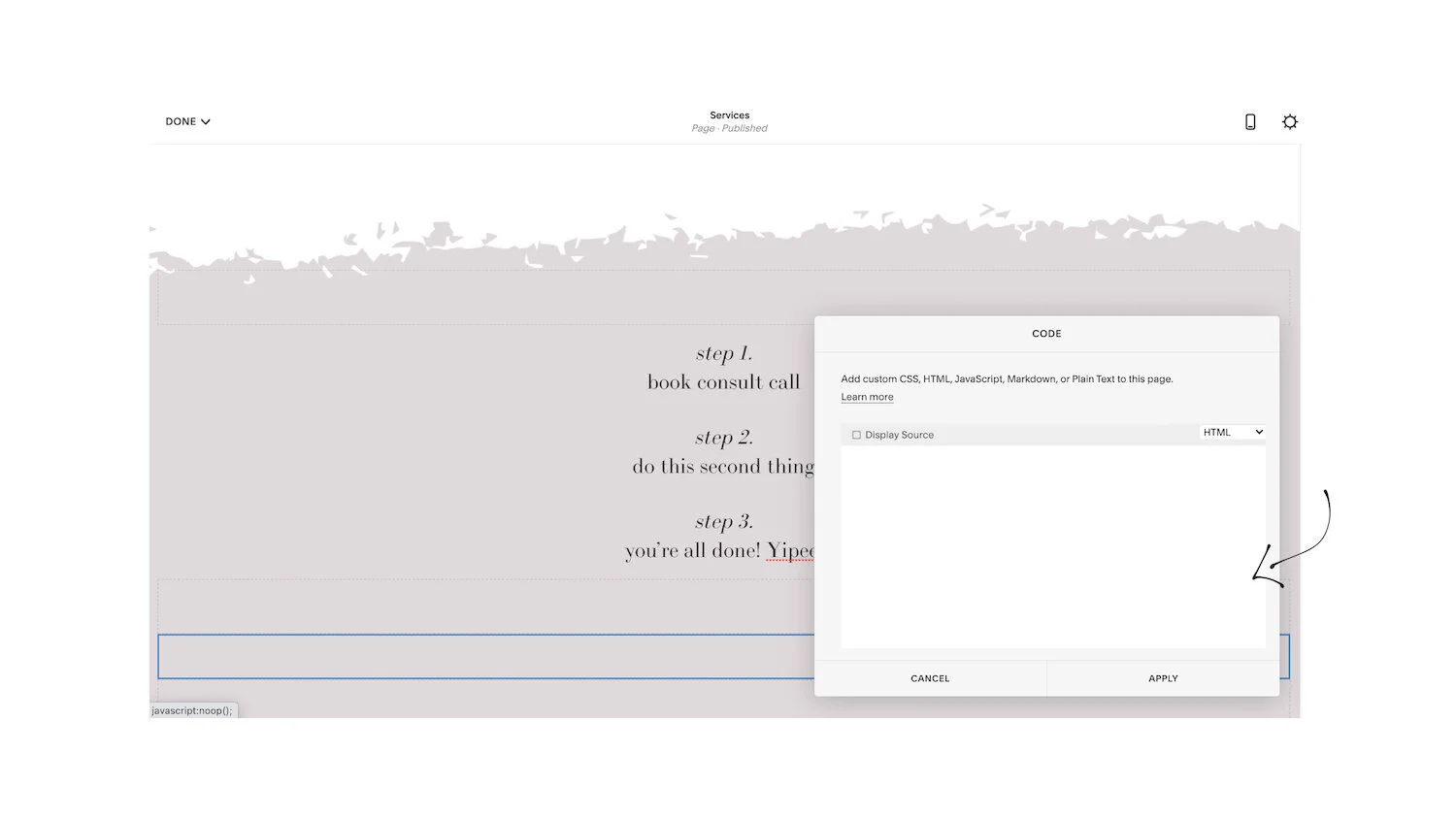 Squarespace allows you to insert a code block exactly where you want that special something to appear, and apply your custom code snippet right there in the block.