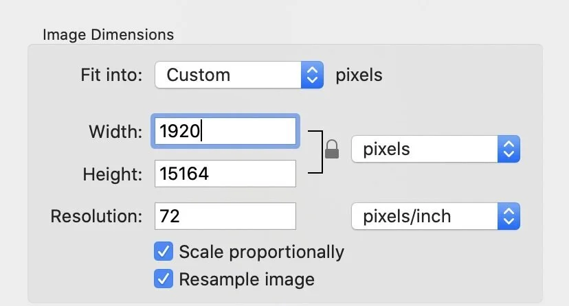 Step 3: Open the photo in Preview (Mac) and go to tools > adjust size. Change the width of the photo to the recommended upload size from before.