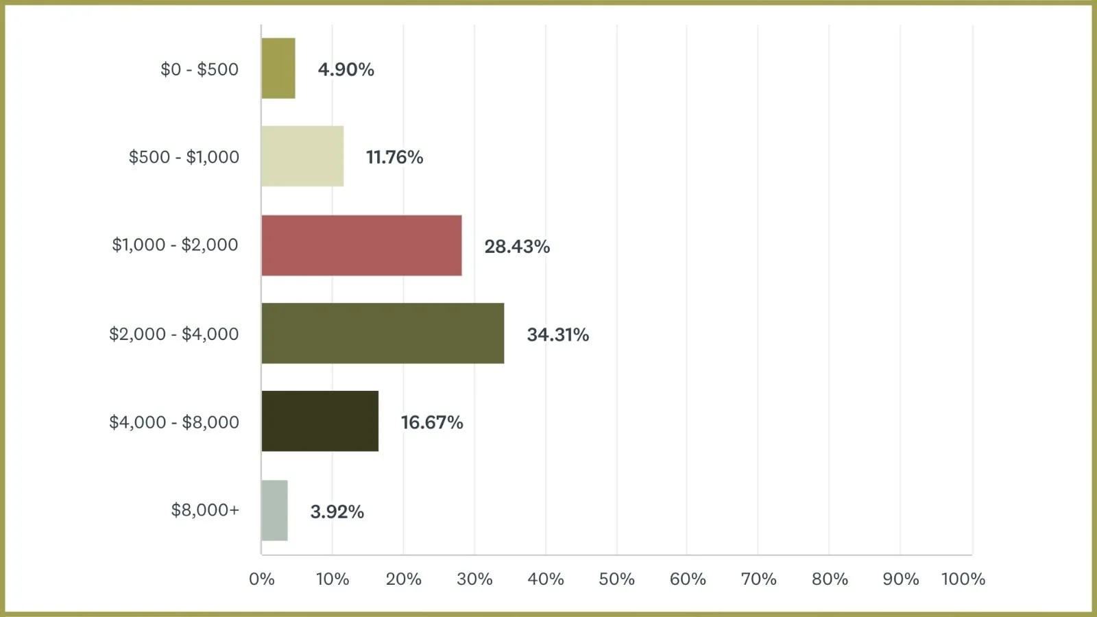 That said, 29% are still in the $1,000–$2,000 range, which suggests some may be playing it too safe with pricing.
