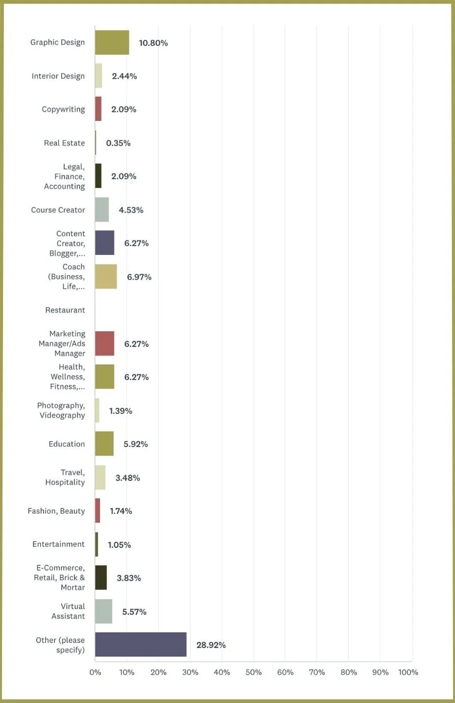 Approximately 7% expressed an interest in creating additional revenue streams, such as template shops or digital products, to diversify income and reduce reliance on client work.